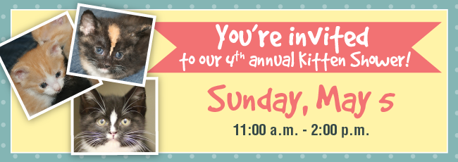 It’s spring, also known as Kitten Season! Have you ever noticed how many kittens are born at this time of year? The shelters that take them in will need extra supplies to keep up with their needs. Tree House Humane in Chicago, for instance, is throwing a kitten shower on Sunday, May 5th. Guests are invited to meet the new kittens, have a tour of the facilities,  play shower games, choose kitten names, and win prizes! In return, they ask that you bring a shower gift to help care for their new additions. It’s like a baby shower, but for kitties!