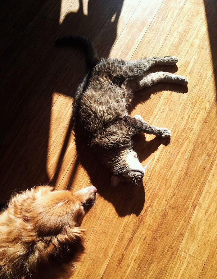 sharing the same sun puddle.
