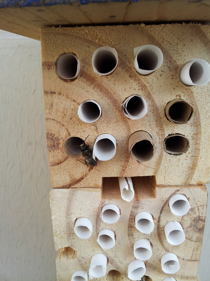 • Are those the bees that chew holes in the wooden parts of our house? The head peep isn’t terribly fond of the chewing holes part. It sounds like they are pretty unruly, so there’s not much hope of sending them to a bee version of a scratching post so that they can hang around and do their pollinating.