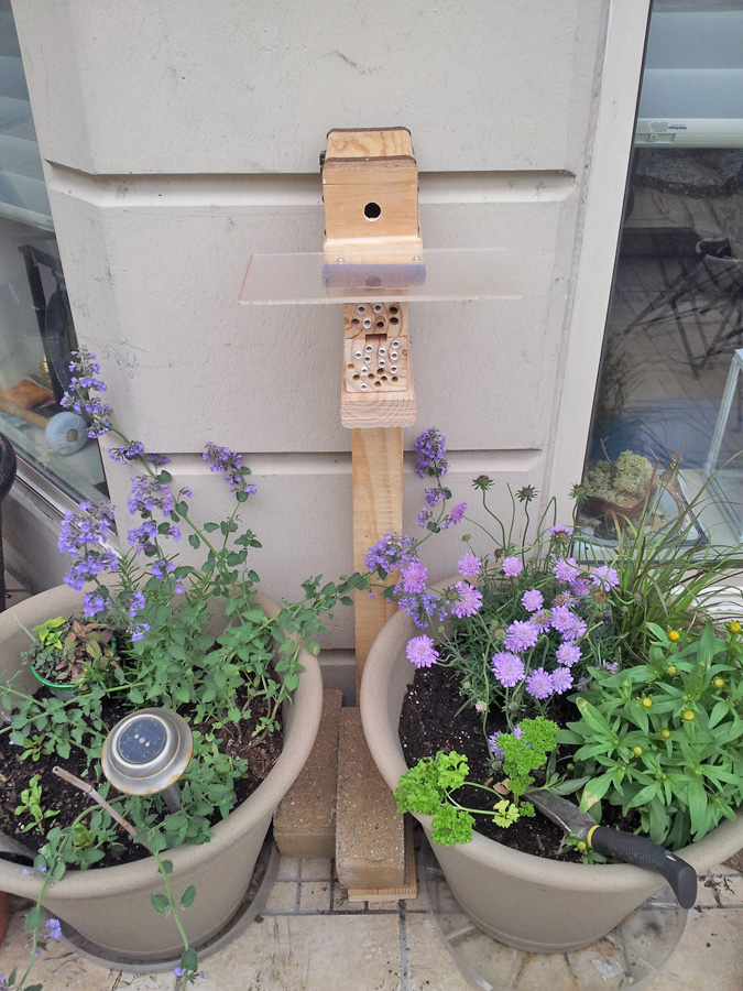 We hope the bees come back home, but if they don’t, we’ll try again next year. And we encourage everyone else to try, too! It’s a wonderful way that home gardeners can help support the failing bee populations. They may not make honey, but they pollinate, and that’s so important to our food supplies. All you need is a little bee house hung in a south-facing, rain-free area, a hole filled with clay-like mud, and lots of flowers!