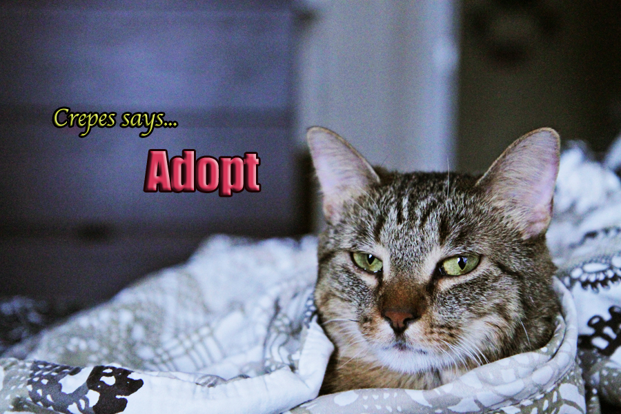 Crepes, you are a thoughtful and wise cat. We hope many of those looking for a new anipal will heed your advice. XO, Lily Olivia, Mauricio, Misty May, Giulietta, Fiona, Astrid, Lisbeth and Calista Jo