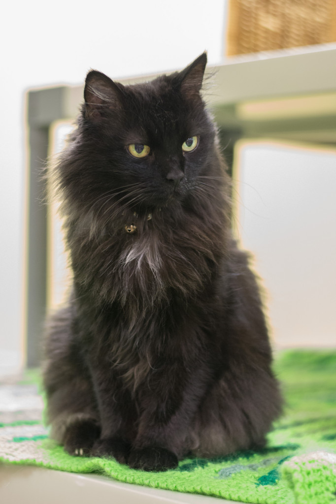 This silky black beauty demands lots of attention. She does ok with the other cats but would likely prefer to be your one and only.