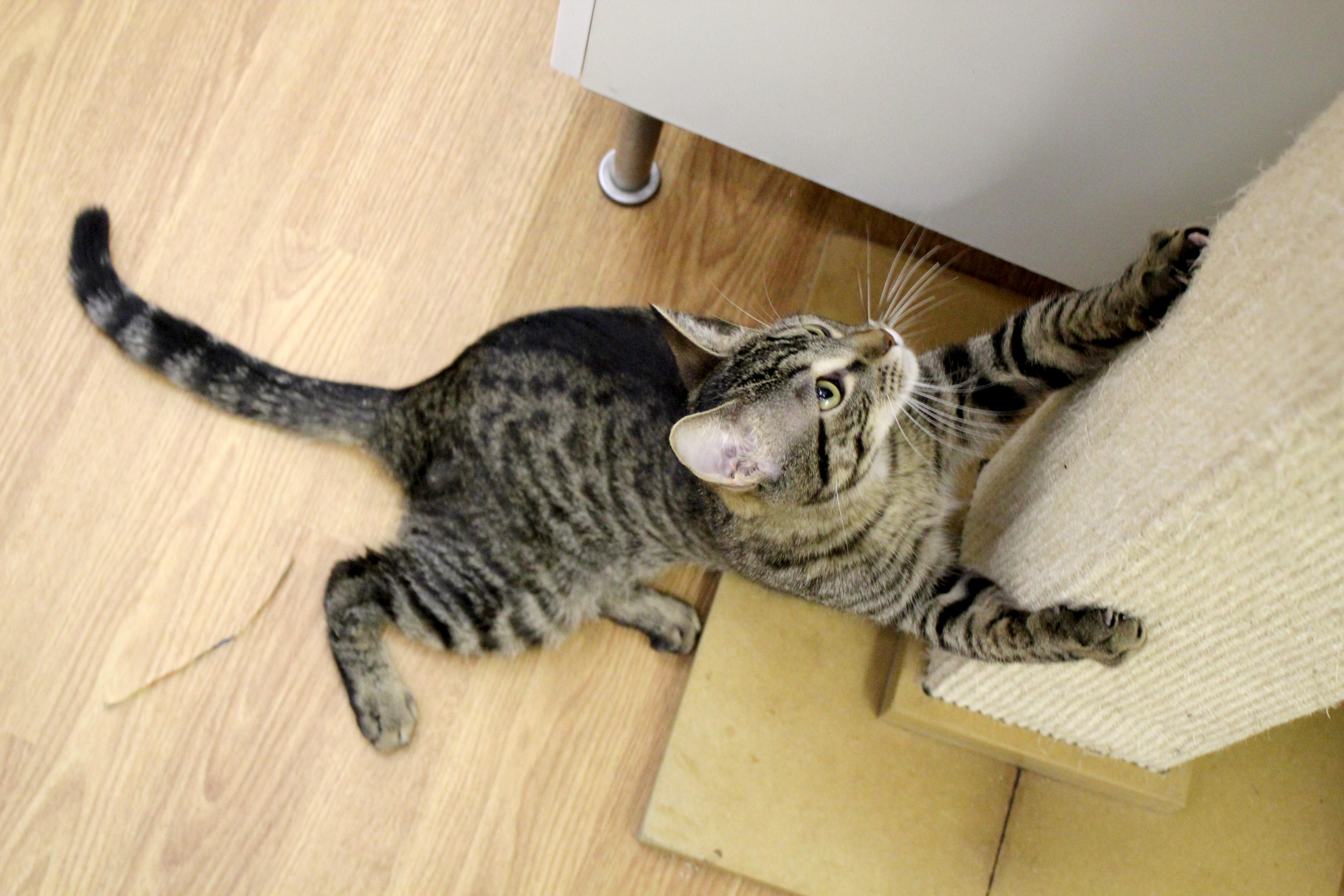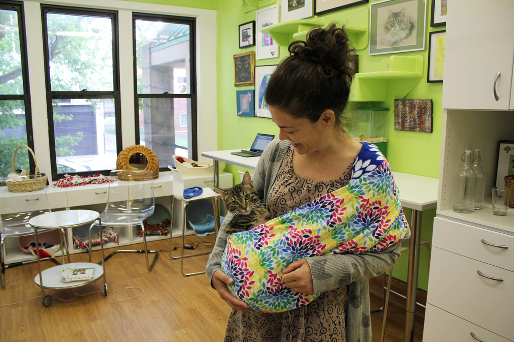 You see, Athens may have had a hard fall at some point in his life, possibly from, as Tree House points out, Mount Olympus. I tried climbing that once. It’s slippery. Anyway, Athens is just under one year old and, due to an old spinal fracture, he rides the floor side saddle, like a tabby cowboy. In his sideways style, he chases other cats, toys, and loves to greet people. He’s curious about a lot of things, most especially about what it would be like to scoot around YOUR floors. Or be carried about like a baby in a little sling across your chest. He wants to know! And you can help him! All you have to do is call Tree House Humane Society in Chicago and apply for adoption. Then, bring him home and give him the answers!